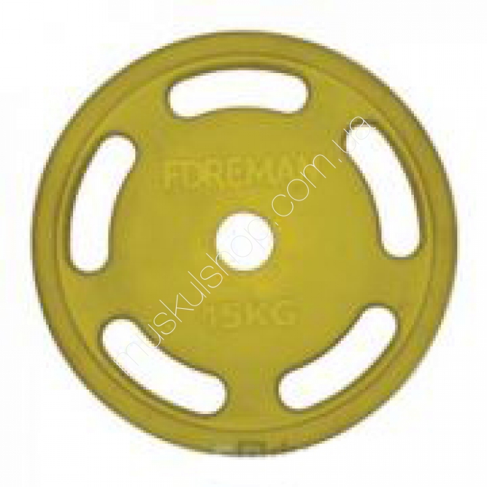 ForemanДиск E-Z Foreman Roezh FM-15KG-YLДиск E-Z олимпийский обрезиненный Foreman Roezh FM-15KG-YL является новинкой на рынке спортивного оборудования. Компания, с мировым именем выпустила новый диск, который способен стать незаменимым в любом спортивном зале и другом подобном учреждении. Он относиться к линии полупрофессионального оборудования, но при этом может быть использован и новичками. Универсальность снаряда позволяет применять его не только мужчинам спортсменам, но и женщинам.