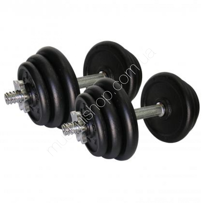 Комплектация: 2 грифа, 4 гайки, 4 диска по 1 кг, 4 диска по 2 кг, 4 диска по 3 кг