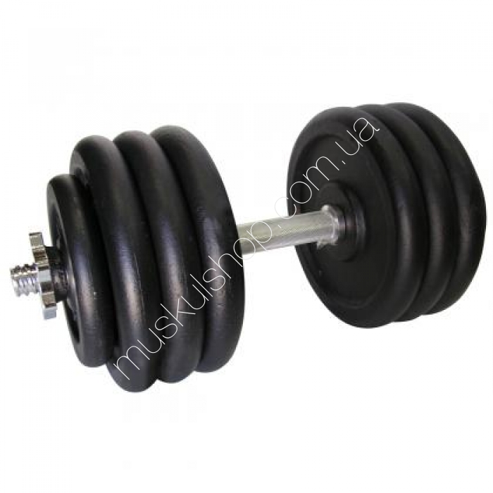 Комплектация: 1 гриф, 2 гайки, 6 дисков по 5 кг, 2 диска по 2 кг