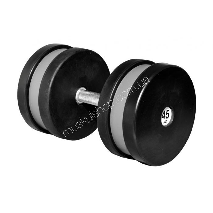 Гантель профессиональная FGMA ТК 409.45 имеет универсальную, но достаточно компактную структуру, которая облегчает хранение снаряда и его использование даже в не больших помещениях. Покрытие гантели обеспечивает ей защиту от любого негативного воздействия, будь то влага, ультрафиолет, грязь, или другие факторы. Для того, чтобы продлить срок использования снаряда, при его создании были использованы только качественные и износостойкие компоненты. Поскольку представленное оборудование является универсальным для использования, вы можете применять его и для коммерции, и в домашних условиях. Гантель профессиональная ФГМА ТК 409.45 современное оборудование, которое используется для развития мышечной массы в области рук и плечевого пояса. Насечки на рукояти гантели обеспечивают её статичное положение и не позволяют снаряду скользить в ладони пользователя.