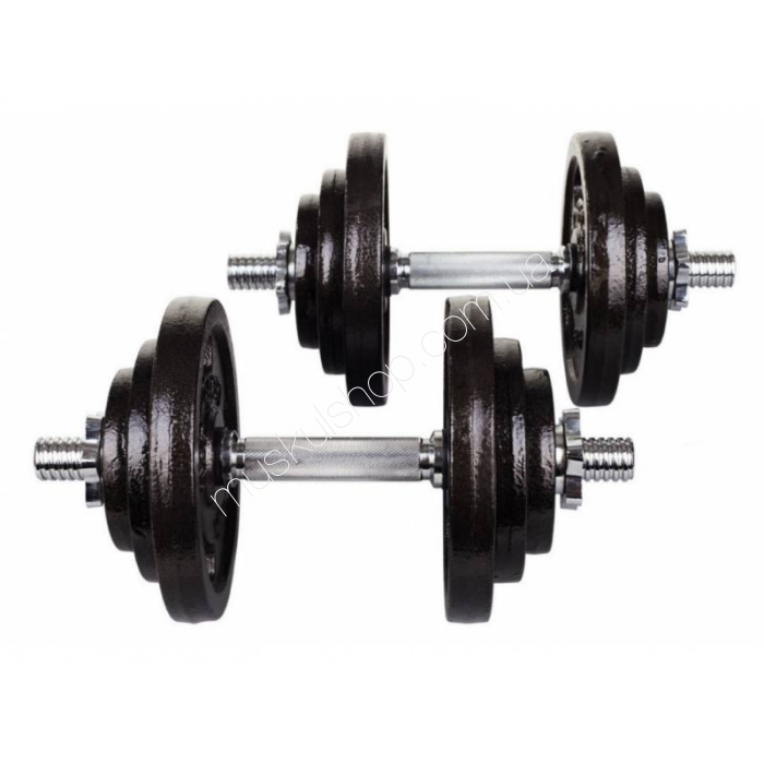 Диски металлические: 4 x 5 кг, 4 х 2,5 кг и 4 х 1,25 кг