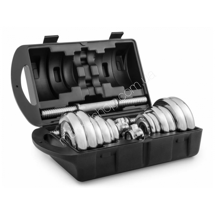 Hop-SportГантели хромированные Hop-Sport 2 х 10 кг в кейсеГантели хромированные Hop-Sport 2 х 10 кг в кейсе наиболее удобное и простое приспособление для занятий силовыми видами спорта и подготовки спортсменов к соревнованиям. Основная особенность такого оборудования состоит в том, что оно является наборным, а это значит, что вы сами можете собрать себе гантель необходимого веса, дабы обеспечить правильную и максимально комфортную нагрузку на мышцы. Представленный тип набора состоит из двух грифов, нескольких дисков и четырех замков, что удобно располагаются и хранятся в кейсе. Гантели хромированные Хоп-Спорт 2 х 10 кг в кейсе за счет своей конструкции и возможности достаточно удобного хранения делают возможным её использование в домашних условиях. А поскольку у вас имеется возможность начать свои тренировки с минимальным весом гантелей, это значит, что их может использовать даже новичок.