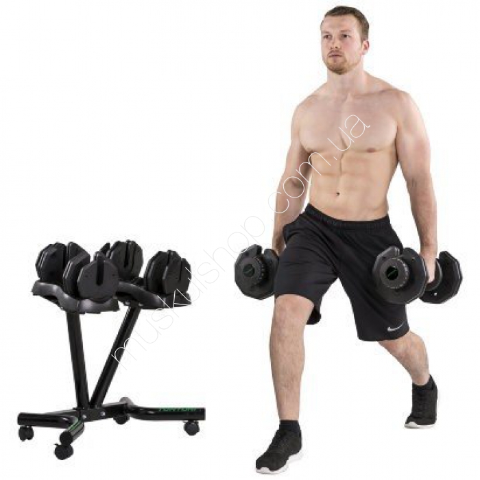 TunturiГантели со стойкой Tunturi 14TUSCL383-384Гантели со стойкой Tunturi Selector Dumbbells 14TUSCL383-384 это набор современных спортивных снарядов, который позволит вам проводить качественные и эффективные тренировки по развитию и укреплению мышц рук и плечевого пояса. Подобный набор позволит вам как проводить полноценные силовые тренировки, так и легкий разогрев перед тем, как перейти к тренировкам на тренажерах. Гантели со стойкой Тантури Селектор Дамббеллс 14ТЮССЛ383-384 имеют удобные рукояти, которые способны обеспечить комфортный хват, а потому не будут выскальзывать из ваших рук во время тренировочного процесса. Это важно, поскольку надежность хвата также будет обеспечивать и безопасность и исключит возможность получения травмы во время тренировок. Особенность данного оборудования состоит в том, что, по факту, его можно назвать набором. Проще говоря, в этот ряд не входит несколько пар гантелей, их присутствует всего две, но с дополнительными грузами, которые позволят вам быстро изменять вес гантельного ряда для увеличения, или уменьшения нагрузки.