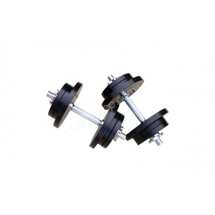 На одну гантель одевается: диски 2 по 5 кг, 4 по 2.5 кг