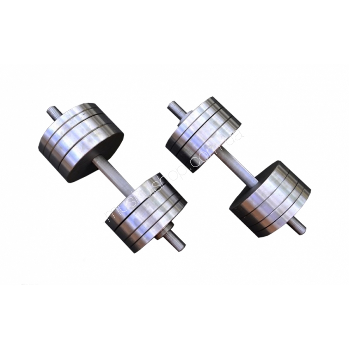 На одну гантель одевается: диски 4 по 5 кг, 4 по 3 кг