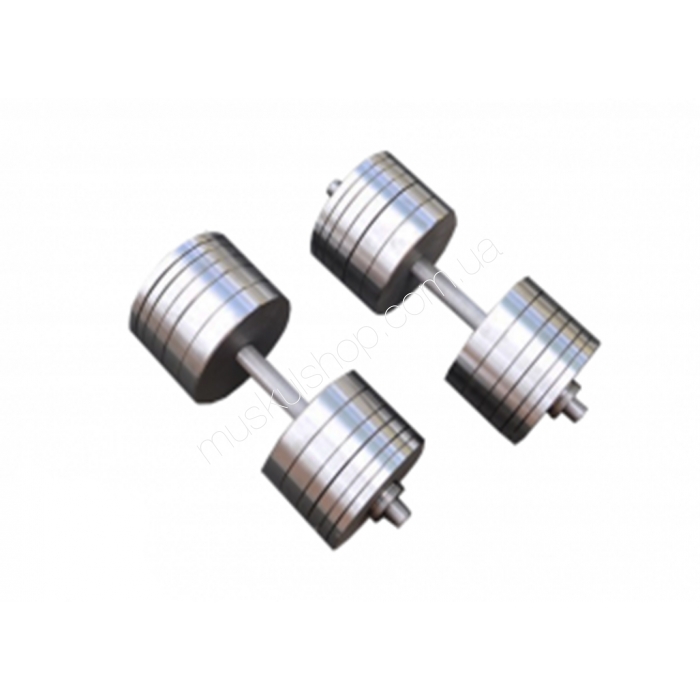 На одну гантель одевается: диски 4 по 5 кг, 4 по 3 кг, 4 по 2 кг