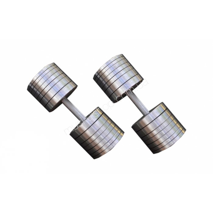На одну гантель одевается: диски 4 по 5 кг, 4 по 3 кг, 4 по 2 кг