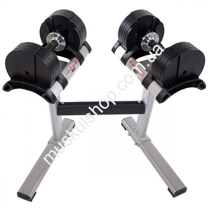 FinnloГантели со стойкой Finnlo Maximum Smart LockНабор гантелей Finnlo Maximum Smart Lock со стойкой это идеальный вариант для домашнего использования! Продуманый, компактный, эффективный и удобный комплект гантелей Finnlo Maximum Smart Lock со стойкой для тренировки и проработки мышц плечевого пояса, дельтовидной мышцы, бицепса, трицепса, мышц спины и пресса. Незаменимый тренажер для тех, кто стремиться иметь прокачанное тело и привлекательную фигуру. Производители FINNLO учли все ньюансы и ступени тренировки, позаботились о каждой детали для безопасной и эффективной работы. Нагрузка от 2 до 20 кг на каждой гантели позволит провести эффективный и всеохватывающий тренинг в домашних условиях. В основе конструкции находится система ввинчивания стального болта в определенно заданные весовые пазы.