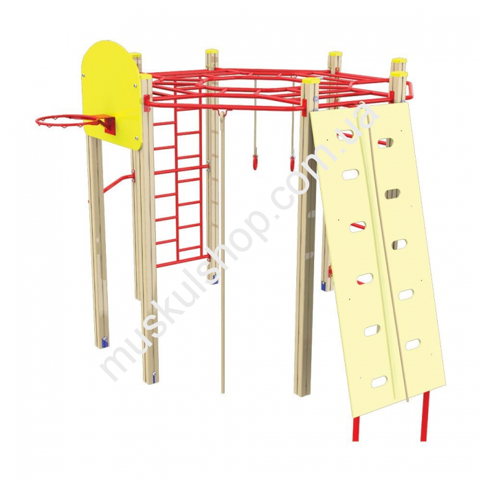 Гимнастический комплекс Атлет-1 Интер Атлетика S724 выполнен из прочного, деревянного бруса, его устанавливают на детских площадках, но и дачах, загородных комплексах, базах отдыха, школах и детских лагерях. Укомплектована модель рукоходом, гимнастическими кольцами, лестницей, перекладинами, двумя баскетбольным кольцом, доской для скалолазания и другими. Общая длина комплекса составляет 4,92 метров, а высота 2,81 метра. Уличный комплекс поможет обрести и поддерживать физическую форму накачать все группы мышцы тела, а также сыграть в активные виды спорта. Категорически запрещена эксплуатация в снег, дождь и сильный ветер, чтобы нивелировать возникновение травматизма. Рассчитана модель на детей в возрасте от 6 до 12 лет, модель поможет развить мышцы рук, ног, пресса и суставы, представлена в красном цвете, способная выдерживать нагрузку 80 кг на 1 пользователя. Модель абсолютно безопасная и безвредная, есть различные сертификаты качества и безопасности эксплуатации.