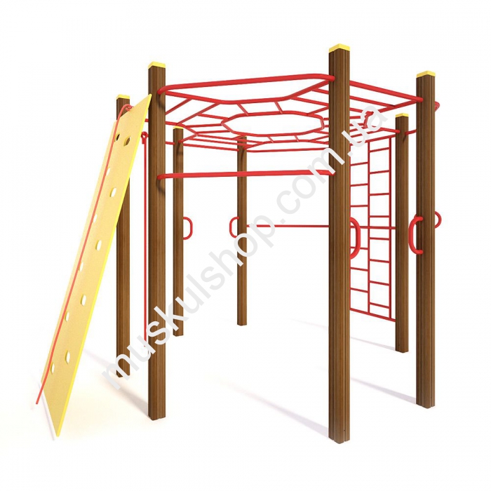 Гимнастический комплекс Атлет Интер Атлетика S724.1 оснащен рукоходом, гимнастическими кольцами, лестницей, перекладинами, доской для скалолазания и другими. Изготовлен комплекс из прочного, деревянного бруса, его устанавливают на детских площадках, но и дачах, загородных комплексах, базах отдыха, школах и детских лагерях. Общая длина комплекса составляет 3,42 метров, а высота 2,54 метра. Рассчитана модель на детей в возрасте от 6 до 12 лет, модель поможет развить мышцы рук, ног, пресса и суставы, представлена в красном цвете, способная выдерживать нагрузку 80 кг на 1 пользователя. Модель абсолютно безопасная и безвредная, есть различные сертификаты качества и безопасности эксплуатации. Категорически запрещена эксплуатация в снег, дождь и сильный ветер, чтобы нивелировать возникновение травматизма.
