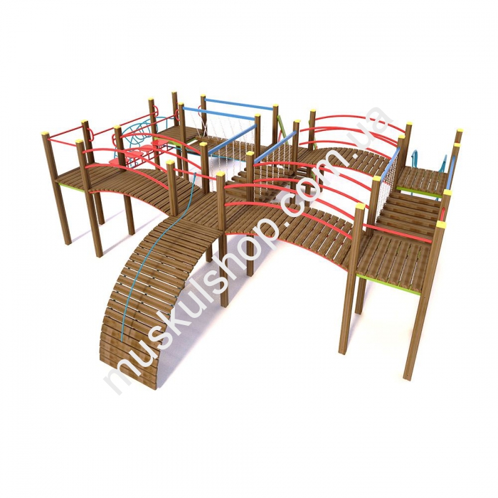 Гимнастический комплекс Лабиринт Интер Атлетика S715 напоминает целый городок для активного вида спорта и занятий на природе. Рассчитана модель на детей в возрасте от 3-х до 12-ти лет, модель поможет развить мышцы рук, ног, пресса и суставы, представлена в красно-синем цвете, способная выдерживать нагрузку 80 кг на 1 пользователя. Общая длина комплекса составляет 8,50 метров, а высота 2,44 метра. Модель абсолютно безопасная и безвредная, есть различные сертификаты качества и безопасности эксплуатации. Уличный комплекс поможет обрести и поддерживать физическую форму накачать все группы мышцы тела, а также сыграть в активные виды спорта. Категорически запрещена эксплуатация в снег, дождь и сильный ветер, чтобы нивелировать возникновение травматизма. Выполнен комплекс из прочного, деревянного бруса, его устанавливают на детских площадках, но и дачах, загородных комплексах, базах отдыха, школах и детских лагерях. Он состоит из рукохода, лестниц, брусьев, доски для пресса.