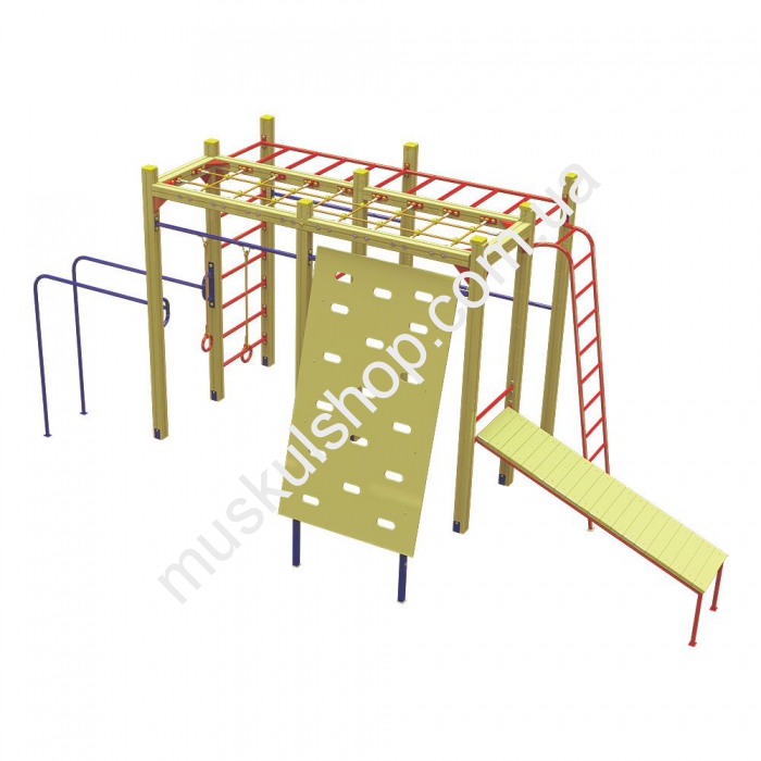 Гимнастический комплекс Рукоход Интер Атлетика S725 обладает длиной 6,55 м и высотой 2,59 метра. Изготовлен комплекс из прочного, деревянного бруса, его устанавливают на детских площадках, но и дачах, загородных комплексах, базах отдыха, школах и детских лагерях. Категорически запрещена эксплуатация в снег, дождь и сильный ветер, чтобы нивелировать возникновение травматизма. Рассчитана модель на детей в возрасте от 6 до 12 лет, модель поможет развить мышцы рук, ног, пресса и суставы, представлена в красном цвете, способная выдерживать нагрузку 80 кг на 1 пользователя. Оснащена модель несколькими рукоходами, прямой и угловой лестницей, брусьями, доской для скалолазания, трапом для пресса и прочим.