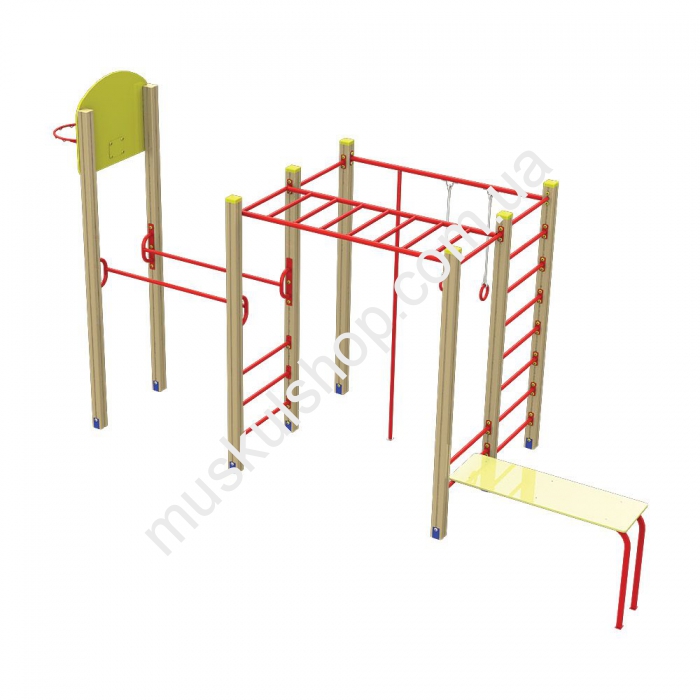 Гимнастический комплекс Спорт Интер Атлетика S727 оснащен рукоходом, лестницей для пресса, баскетбольным кольцом, перекладинами для подтягивания, брусьями, гимнастическими кольцами, прочным канатом и турниками. Изготовлен комплекс из прочного, деревянного бруса, его устанавливают на детских площадках, но и дачах, загородных комплексах, базах отдыха, школах и детских лагерях. Категорически запрещена эксплуатация в снег, дождь и сильный ветер, чтобы нивелировать возникновение травматизма. Рассчитана модель на детей в возрасте от 6 до 12 лет, представлена в красном цвете, способная выдерживать нагрузку 80 кг на 1 пользователя, обладает длиной 5,70 м и высотой 2,36 метра. Модель развивает у детишек выносливость, координацию движения, а также сделать прогулки на свежем воздухе полезными для здоровья.