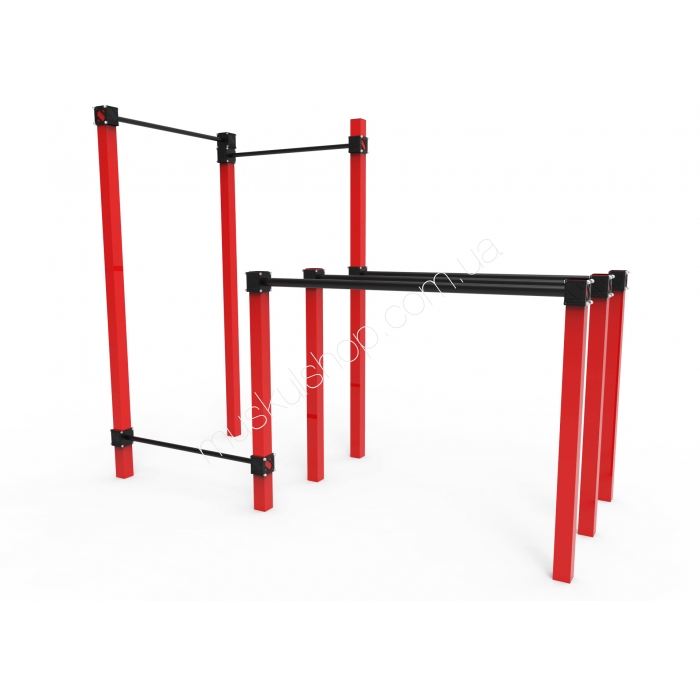 StreetSportГимнастический комплекс StreetSport SG-010Гимнастический комплекс StreetSport SG-010 это оборудование, которое предназначается для установки на игровых, детских и спортивных площадках, на стадионах у школ и университетов, а также и во дворах у домов. Представленное оборудование незаменимо для тех пользователей, кто желает укрепить свое здоровье и развить мышечную массу. Каркас комплекса отличается своей повышенной прочностью и высоким качеством, что соответствует всем необходимым сертификатам. Гимнастический комплекс СтритСпорт СГ010 поможет при развитии координации движений и выносливости, он позволит вам укрепить руки и спину, а также все остальные группы мышц. Защитой для каждого компонента представленного оборудования служит покрытие краской, которое препятствует появлению коррозии. Структура комплекса такова, что его во время своих тренировок одновременно могут использовать несколько спортсменов.