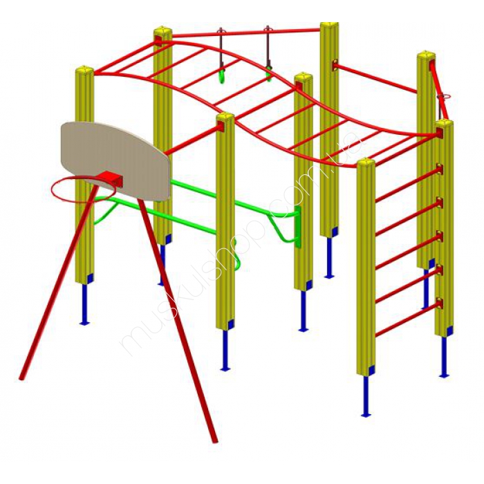 VadzaariГимнастический комплекс Волна Vadzaari 543Гимнастический комплекс Волна Vadzaari 543 является особо прочной конструкцией, каркас которой создан из конусообразных усиленных труб. Представленное приспособление можно устанавливать не только на специализированных спортивных площадках, но и внутри помещений, которые специально предназначены для этого. Вся конструкция покрыта глянцевой краской, которая одновременно служит и в качестве защиты от любого негативного воздействия, которое может исходить из окружающей среды. Внешнее покрытие комплекса устойчиво к влаге, к ультрафиолету, а также к резким перепадам температур, за счёт чего может долгое время сохранять свой внешний вид.