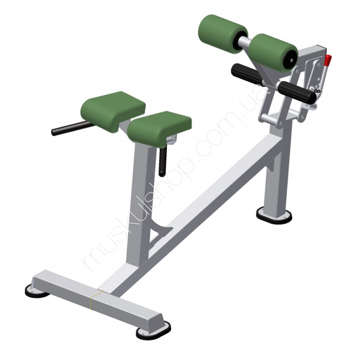 FGMAГиперекстензия горизонтальная FGMA ТК 116Гиперекстензия горизонтальная FGMA ТК 116 оснащается валиками для ног, которые обеспечивают фиксацию пользователя так, чтобы не упасть со скамьи и не травмироваться. Мягкая часть скамьи покрыта устойчивой к деформациям эко кожей, которая не токсична и не вредит здоровью. Форма представленной модели скамьи дополнительно обеспечивает нагрузку для скорейшего достижения результата. Мягкие накладки на ножках выполняют роль фиксаторов скамьи в более устойчивом положении, чтобы она не скользила на полу. Гиперекстензия горизонтальная ФГМА ТК 116 идеальное оборудование, которое предназначается для тренировок на развитие мышц брюшного пресса. Удобная конструкция и небольшие габариты представленного оборудования способствуют его установке даже в маленьком помещении, к примеру, в домашнем зале.