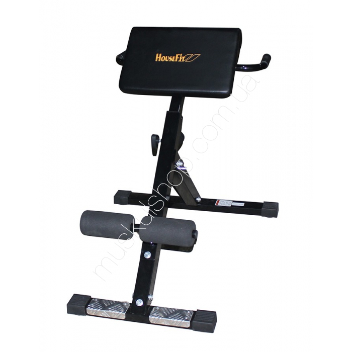 Гиперэкстензия HouseFit HG 2111 под углом 45 градусов. Скамья позволяет эффективно тренировать мышцы спины, снимать нагрузку с нижнего отдела позвоночника. Устойчивая конструкция из стального профиля. Опорная подушка из мягкого комфортного материала регулируется по высоте. Опора и валики для ног обеспечивают надежную фиксацию тела атлета в ходе тренировки. Снижает усталость спины, увеличивает гибкость, улучшает кровообращение, развивает мышцы спины и живота.
