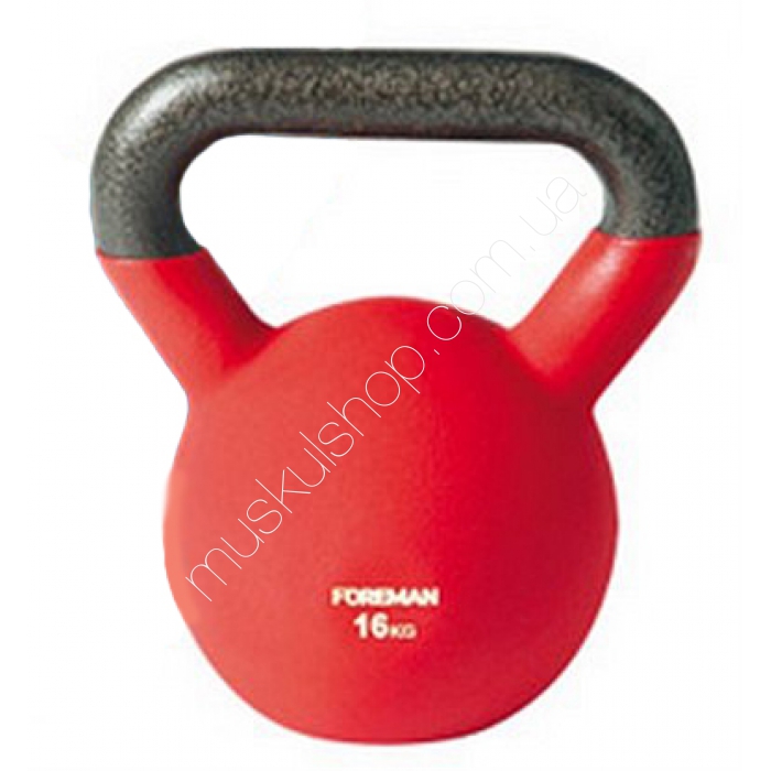 ForemanГиря двухцветная Foreman TTK-16KGГиря двухцветная Foreman TTK-16KG обладает цельнолитой, а потому не разборной конструкцией, которая и обеспечивает устойчивость перед деформациями. Рукоять данного приспособления достаточно удобна для выполнения упражнений, а также способна обеспечить надёжность хвата. Покрытие самой гири позволяет ей оставаться устойчивой перед любыми негативными факторами, за счёт чего исключается возможность появления коррозии. Прочные материалы, из которых создан снаряд, обусловили продолжительность его использования.