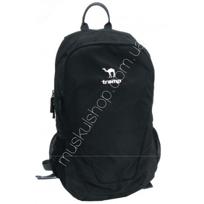 Рюкзак Tramp городского назначения, пошита модель с прочного, качественного, надежного и эластичного полиэстера высшей категории. Модель черного цвета, на него нанесен логотип фирменного бренда, он предназначен для пешеходных и велосипедных прогулок. В рюкзаке предусмотрена вентилируемая спина, умный органайзер, съемные ремни, карманы сбоку из прочной сеточки. В рюкзаке предусмотрена система вентиляции, несколько отделений с перегородками на прочной молнии. Вес модели составляет около 1 кг, а общий объем позволяет взять самые необходимые вещи в поход, он способен вместить свыше 20 литров. Рюкзак оснащен фирменной фурнитурой Дюралекс, которая характеризуется полной безотказностью и высокой качественностью.