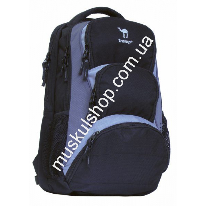 Рюкзак Tramp городского типа обладает уникальным местом для хранения ноутбука, карманчиком для хранения мобильного телефона и ключей, а для удобства переноски вверху размещена ручка анатомической формы. Модель очень легкая, ее вес составляет около 1 кг, а общий объем позволяет взять самые необходимые вещи в поход, он способен вместить 30 литров. Пошита модель с прочного, качественного, надежного и эластичного полиэстера высшей категории. На рюкзак нанесен логотип фирменного бренда, он предназначен для разного рода туристических походов, начиная от пешеходных, оканчивая велосипедными прогулками. В рюкзаке предусмотрена уникальная система вентиляции спины, все лямки анатомической формы, укомплектован рюкзак фирменной фурнитурой Nifco, выполнен в серо-черном цвете.