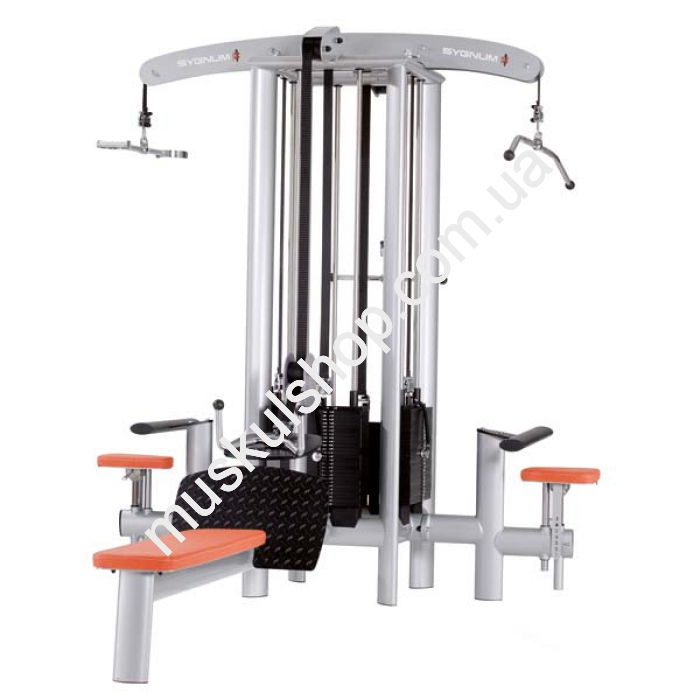 GYM80 Sygnum 4 Station Tower – это универсальная станция для четверых тренирующихся одновременно. Позволяет выполнять упражнения: «тяга верхнего блока», «тяга нижнего блока», а также разнообразные упражнения на руки и верхний плечевой пояс с отягощениями.