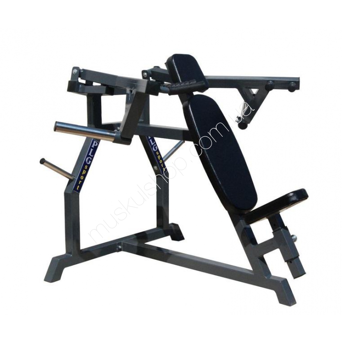 PLGsportХаммер плечи PLGsport K-046Хаммер плечи PLGsport K-046 отличается тем, что обеспечивает целенаправленные нагрузки, которые равномерно распределяются по мышцам, позволяя задействовать даже глубочайшие. Простота конструкции оборудования совмещается с его эффективностью, позволяя проводить качественные и эффективные тренировки. Конструкция оборудована мягким сидением, которое не только обеспечивает комфорт для любого пользователя, но и изолирует позвоночник от нагрузок. Хаммер плечи ПЛГспорт К-046 оснащается удобными рукоятками с мягким покрытием, которое способствует надежности хвата, а потому они не будут выскальзывать из рук. Благодаря тому, что подвижные рукоятки соединены с конструкцией при помощи подшипников, работа с тренажером всегда будет тихой и плавной. Все компоненты тренажера имеют высокое качество, что исключает их деформацию от больших нагрузок.