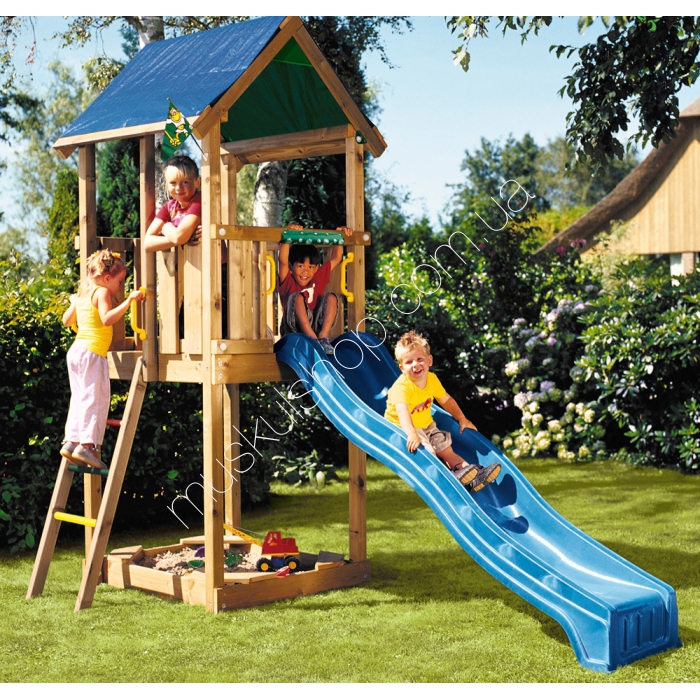 Игровая Башня Jungle Gym Jungle Castle #401_120 подарит вам возможность интересно разнообразить свободное время ребенка, обеспечив ему веселые игры с друзьями. Такая детская площадка имеет множество разнообразных комплектов, а, главное, её можно соединять с другими подобными модулями и башнями, значительно увеличивая комплекс. Представленная игровая площадка прекрасно подойдет для установки даже на небольшом земельном участке. Игровая Башня Джангл Джим Джангл Кэстл #401_120, не смотря на свою конструкцию, остается довольно компактным, а потому он не потребует много места для своей установки. Прочные породы дерева, из которых создана данная площадка, и её покрытие значительно повышает срок её службы и позволяет ей не поддаваться воздействию резкой смены погоды. Приобретя такой комплекс для своего ребенка, вы поможете исполнить его мечту.