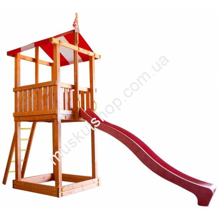 Детская игровая площадка Sportbaby Babyland-1 состоит из детской горки и песочницы. О домике из настоящей сосны мечтает любой малыш. Площадка способна выдерживать достаточно большой вес, при этом масса комплекса не превышает 180 кг. Площадка представлена в красивом цвете натурального дерева. Сосна пропитана антисептической добавкой, не пропускающей влагу, а также блокируя гниль и развития различных бактерий в дереве. Даже спустя пару лет частой эксплуатации, такой детский комплекс абсолютно не изменит первоначальный облик. Комплекс имеет различные сертификаты качества. Сосна способна выдерживать динамические физические нагрузки и при этом не менять физические свойства.