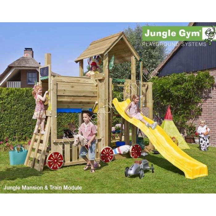 Jungle GymИгровая площадка Jungle Gym Train Module 450_415Игровая площадка Jungle Gym Train Module #450_415 это веселый аттракцион для детей практически любого возраста, который обеспечит множество часом за веселым игровым общением. Наличие ручек и высоких бортиков обеспечат вашему ребенку безопасность от падений во время игр. Прочная порода дерева, из которой создавался представленный комплекс, обеспечивает его долговечность, а покрытие защищает от воздействия погодных факторов. Яркие и привлекательные цвета площадки наверняка понравятся любому маленькому пользователю. Игровая площадка Джангл Джим Трэйн Модуль #450_415 уникальный игровой комплекс, который включает в себя несколько компонентов для веселого времяпровождения ваших детей. Такую площадку можно установить на любой детской и игровой площадке, или даже у себя на даче, если у вас большая семья.