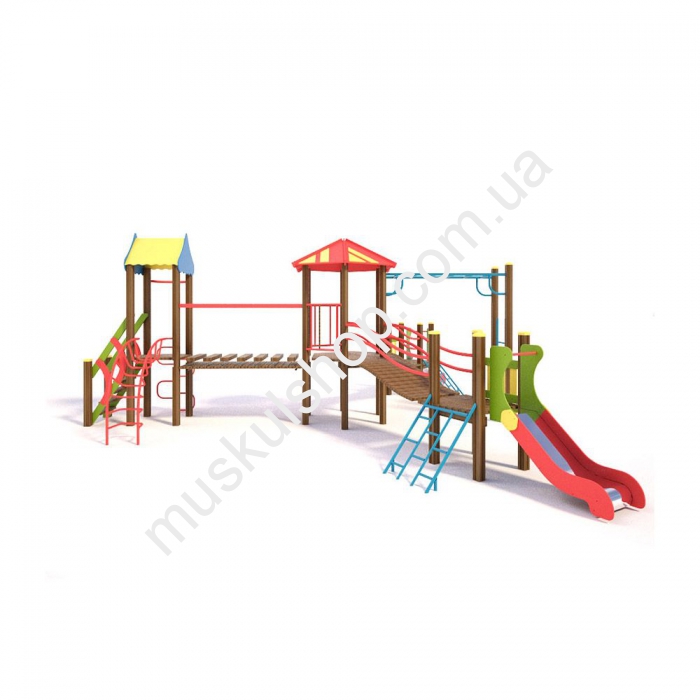 Игровой комплекс Бабочка Интер Атлетика T806 оснащен рукоходом, горкой для крутого спуска, трапом для подъема, дуговой лестница, лестницей с гнутой трубы и другими снарядами. Модель оснащена двумя домиками, которые соединены между собой прочным мостиком, ее устанавливают на детских площадках, на дачах, игровых площадках, базах отдыха и школах. Комплекс выполнен в разноцветном оттенке, общая длина составляет 8,67 м, а высота 3,08 м, рассчитан на детишек от 3 до 6 лет, способен выдерживать нагрузку 80 кг на 1 пользователя. Категорически запрещена эксплуатация при снегопаде, дожде и сильном ветре, чтобы нивелировать возникновение травматизма, необходимо держаться в момент игры за поручни. Модель развивает у детишек выносливость, координацию движения, а также сделать прогулки на свежем воздухе полезными для здоровья.