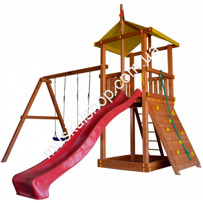 Детский комплекс Sportbaby Babyland-4 украсит любой двор домов или собственного дома. Игровой комплекс комплектуется: горкой, качелями, песочницей, канатом и горка для начинающего скалолаза. Масса комплекса не превышает 200 кг, выполнен из прочной сосны, а перила изготовлены из настоящего бука, цвет комплекса натуральное дерево. Даже спустя пару лет частой эксплуатации, такой детский комплекс абсолютно не изменит первоначальный облик. Комплекс скрасит досуг ваших деток в саду или возле дома, наполнит их положительными эмоциями. Сосна способна выдерживать динамические физические нагрузки и при этом не менять физические свойства. Комплекс имеет различные сертификаты качества.