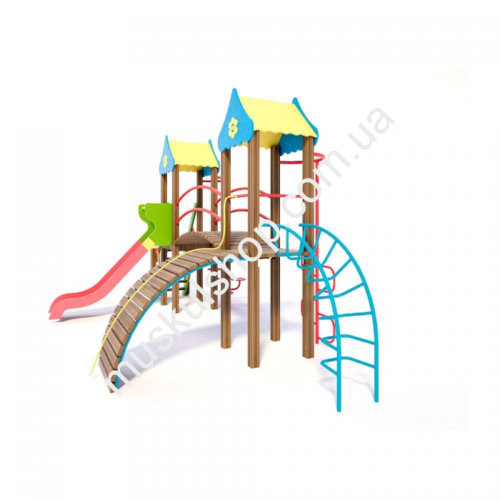 Игровой комплекс Гномик Интер Атлетика T802 оснащен двумя домиками, которые соединены между собой прочным мостиком. Категорически запрещена эксплуатация при снегопаде, дожде и сильном ветре, чтобы нивелировать возникновение травматизма. Развивает у детишек выносливость, координацию движения, а также сделать прогулки на свежем воздухе полезными для здоровья. Модель представлена в разноцветном оттенке, общая длина составляет 3,44 м, а высота 3,08 м, рассчитан на детишек от 3 до 6 лет, способен выдерживать нагрузку 80 кг на 1 пользователя. Модель устанавливают на детских площадках, на дачах, игровых площадках, базах отдыха и школах. Выполнен комплекс из прочного дерева, укомплектован горкой для крутого спуска, трапом для подъема, дуговой лестница, лестницей с гнутой трубы.