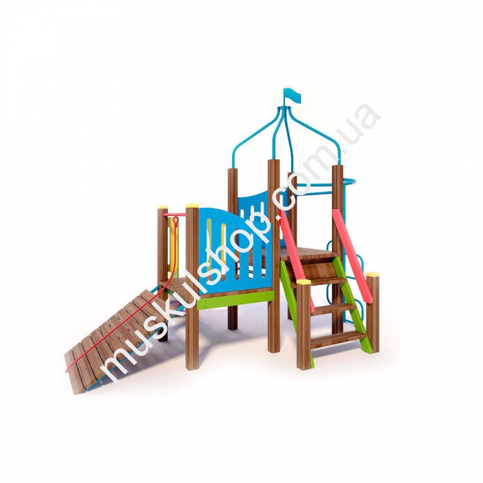 Игровой комплекс Кроха Интер Атлетика ТЕ810 оснащен домиком с крышей, лестницей для поднятия и спуска, трапом для бега, винтовой лестницей для упражнений. Категорически запрещена эксплуатация при снегопаде, дожде и сильном ветре, чтобы нивелировать возникновение травматизма, необходимо держаться в момент игры за поручни. Комплекс выполнен в разноцветном оттенке, общая длина составляет 3,36 м, а высота 3,01 м, рассчитан на детишек от 3 до 6 лет, способен выдерживать нагрузку 80 кг на 1 пользователя. Модель развивает у детишек выносливость, координацию движения, а также сделать прогулки на свежем воздухе полезными для здоровья. Модель устанавливают на детских площадках, на дачах, игровых площадках, базах отдыха и школах.