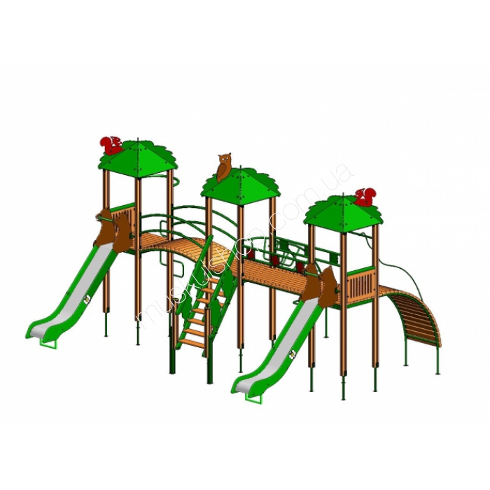 Игровой комплекс Лесной прямой Вадзаари 2013 заинтересует и порадует маленьких пользователей своим оригинальным дизайном, конструкцией и не только. Улучшенная и дополненная конструкция состоит из большего количества аттракционов, а потому каждый ребёнок найдёт, чем себя занять. Конечно же мы позаботились и о защите самого изделия, использовав для этого грунтовку и глянцевые краски. Выполнен в необычной форме, данный аппарат привлечет внимание любого малыша на площадке.