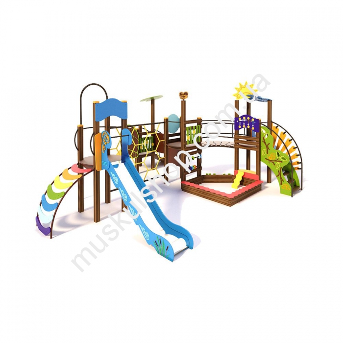Игровой комплекс Ручеек-4 Интер Атлетика T705 оснащен несколькими горками для спуска, трап, паутинка, гнутая лестница и песочница. Категорически запрещена игра при снегопаде, дожде и сильном ветре, чтобы нивелировать возникновение травматизма, необходимо держаться в момент игры за поручни. Выполнена модель из прочного, отборного и качественного сорта дерева, с применением пластика и прочной стали, а представлена модель в разноцветном оттенке, общая длина составляет 5,72 м, а высота 3,06 м, рассчитан на детишек от 3 до 6 лет, способен выдержать нагрузку 80 кг на 1 посетителя. Безупречный комплекс для игр на свежем воздухе, укрепления общего иммунитета ребенка и его здоровья. Его устанавливают на детских площадках, на дачах, игровых площадках, базах отдыха и школах.