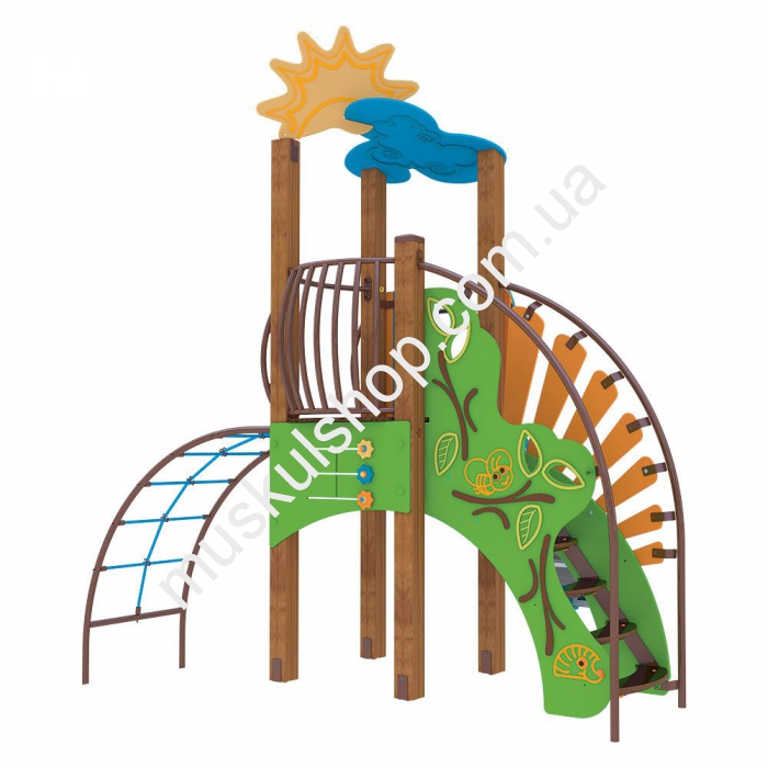 Игровой комплекс Ручеек Интер Атлетика TЕ701.2 комплектуется горкой для крутого спуска, трапом с перилами, и лестницей изогнутой формы с канатами. Безупречный комплекс для игр на свежем воздухе, укрепления общего иммунитета ребенка и его здоровья. Его устанавливают на детских площадках, на дачах, игровых площадках, базах отдыха и школах. Выполнена модель из прочного, отборного и качественного сорта дерева, с применением пластика и прочной стали, а представлена модель в разноцветном оттенке, общая длина составляет 3,07 м, а высота 3,11 м, рассчитан на детишек от 3 до 6 лет, способен выдержать нагрузку 80 кг на 1 посетителя. Категорически запрещена игра при снегопаде, дожде и сильном ветре, чтобы нивелировать возникновение травматизма, необходимо держаться в момент игры за поручни.