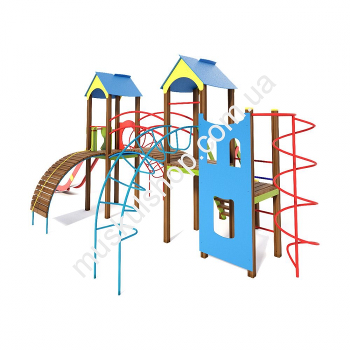 Игровой комплекс Теремок Интер Атлетика T902 установлен на нескольких платформах. Высота составляет 1,5 м от земли, между собой креплены трапами и мостиками. Его устанавливают на детских площадках, на дачах, игровых площадках, базах отдыха и школах. Изготовлена модель из прочного, отборного и качественного сорта дерева, а выполнена в разноцветном оттенке, общая длина составляет 7,99 м, а высота 3,62 м, рассчитан на детишек от 7 до 12 лет, способен выдерживать нагрузку 80 кг на 1 пользователя. Категорически запрещена эксплуатация при снегопаде, дожде и сильном ветре, чтобы нивелировать возникновение травматизма, необходимо держаться в момент игры за поручни. Модель развивает у детишек выносливость, координацию движения, а также сделать прогулки на свежем воздухе полезными для здоровья. Комплекс укомплектован трапом с поручнями, лестницей изогнутой формы, скоростной лестницей для спуска, а также дуговой лестницы, рассчитан на несколько детишек.
