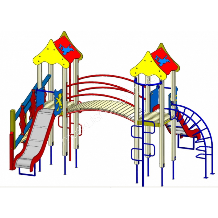 Игровой комплекс Вадзаари 1002 станет не только хорошим развлечением для ребенка, но также и развивающей игрой. Благодаря представленному изделию ребенок будет развивать координацию, внимание, укреплять мышцы и внимание. Конечно же мы позаботились и о защите самого изделия, использовав для этого грунтовку и глянцевые краски. Дабы сделать представленную конструкцию еще более безопасной для детей рекомендуем забетонировать основу.