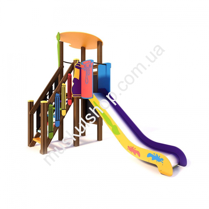 Игровой комплекс Веселый художник Интер Атлетика T817 напоминает доброго художника со шляпой на голове. Оснащен комплекс трапом с поручнями, лестницей изогнутой формы, а также скоростной лестницей для спуска, рассчитан на несколько детишек. Изготовлена модель из прочного, отборного и качественного сорта дерева, а выполнена в разноцветном оттенке, общая длина составляет 1,80 м, а высота 3,00 м, рассчитан на детишек от 3 до 6 лет, способен выдерживать нагрузку 80 кг на 1 пользователя. Категорически запрещена эксплуатация при снегопаде, дожде и сильном ветре, чтобы нивелировать возникновение травматизма, необходимо держаться в момент игры за поручни. Модель развивает у детишек выносливость, координацию движения, а также сделать прогулки на свежем воздухе полезными для здоровья. Его устанавливают на детских площадках, на дачах, игровых площадках, базах отдыха и школах.