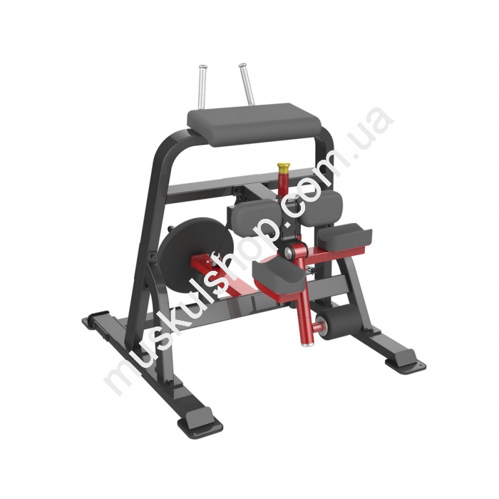 Тренажер нагружается стандартными весовыми дисками от штанги – необходимый вес нагружается спортсменом индивидуально и может варьироваться в очень широких пределах.