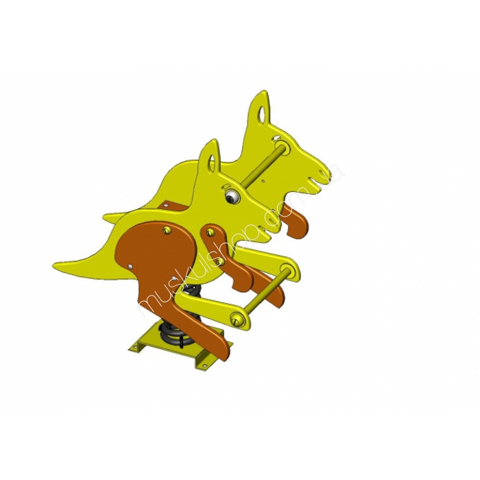 Качалка Кенгурёнок Vadzaari 027 это уникальная конструкция, которая способна подарить множество часов счастья и веселья самым маленьким пользователям. Основание конструкции расположено на прочной и массивной пружине, которая служит также и в качестве балансира. Вся конструкция аппарата устанавливается на детской площадке, при чём, благодаря своему красочному дизайну представленная качалка идеально дополнит абсолютно любую площадку, гармонично вписываясь в общий ландшафт. Основа модели была создана с применением прочного и высококачественного металла, а красочные фигурки, что расположены с обеих сторон, из прочной породы дерева.