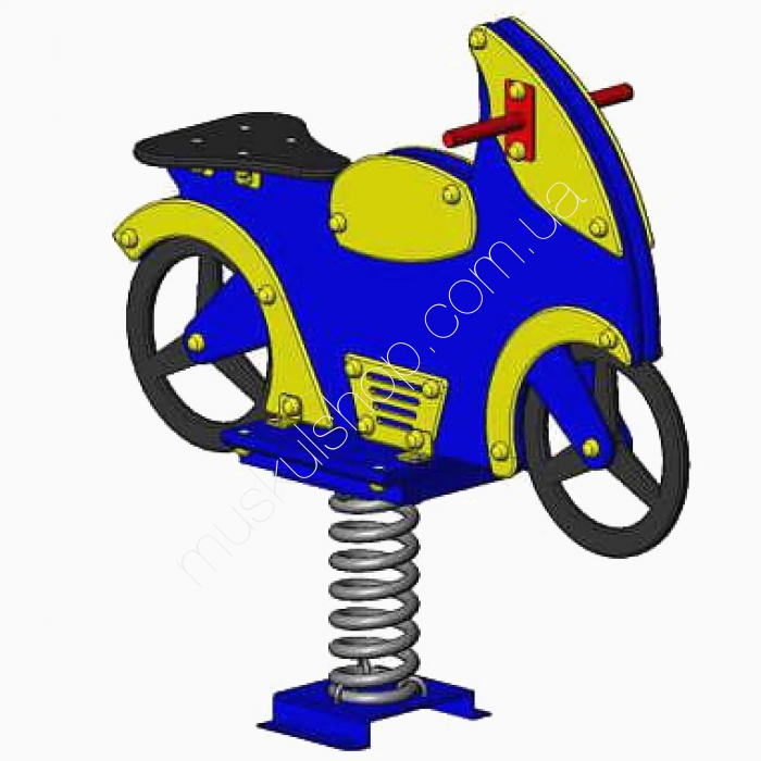 Качалка Мотоцикл Вадзаари 014 это уникальная конструкция, которая способна подарить множество часов счастья и веселья самым маленьким пользователям. Вся конструкция аппарата устанавливается на детской площадке, при чём, благодаря своему красочному дизайну представленная качалка идеально дополнит абсолютно любую площадку, гармонично вписываясь в общий ландшафт. Сама конструкция покрыта яркой и насыщенной краской, которая безопасна для людей, и которая служит в качестве защиты от любых внешних факторов. Основание конструкции расположено на прочной и массивной пружине, которая служит также и в качестве балансира.