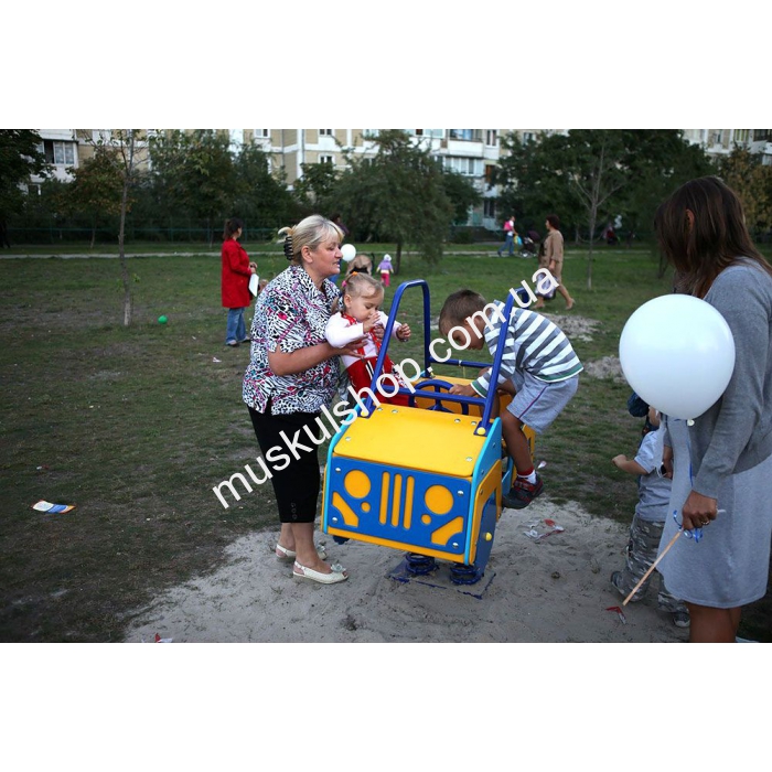 Качалка Inter Atletika представлена в форме мощного, прочного и качественного внедорожника, подойдет детишкам детишек от 3-х до 6 лет. Модель изготовлена с прочного, качественного и надежного металла и дерева, представлена в красочном цвете. Длина модели 1,1 м, запрещена эксплуатации в снегопад, гололед, дождь, во избежание травматизма. Качалка не требует много места под свое расположение, абсолютно безопасная и безвредная, есть различные сертификаты. Устанавливается модель в помещениях, дачах и загородных комплексах, детских площадках, лагерях и базах отдыха, легко транспортируется. Даже после нескольких годов интенсивной эксплуатации, такая качалка не поменяет свой первоначальный облик. Общий вес составляет 105 кг, необходимо забетонировать для нивелирования перевертывания.