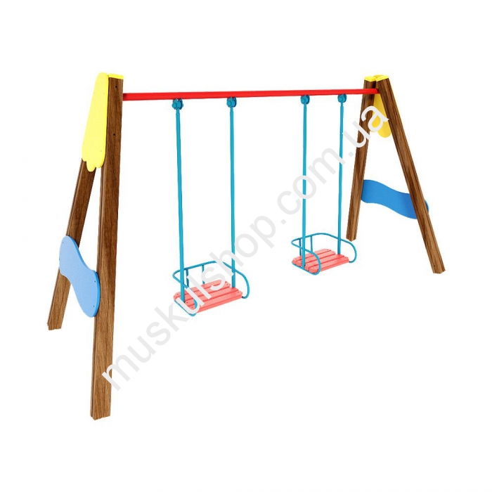 Качели Inter Atletika двойные, установлены на деревянных стойках, перекладина металлическая, способная выдерживать нагрузку в 80 кг, устанавливается на дачах и загородных комплексах, детских площадках, лагерях и базах отдыха, легко транспортируется, обладает весом 127 кг. Не рекомендована эксплуатация в снегопад, гололед, дождь, во избежание травматизма. Качалка не нуждается в большом количестве места под свое расположение, абсолютно безопасная и безвредная, есть различные сертификаты. Процесс установки происходит путем бетонирования основания либо прикручивания болтами. После нескольких годов интенсивной эксплуатации, такие качели не поменяет свой первоначальный облик. Модель рассчитана на детишек от 6-ти до 12 лет.
