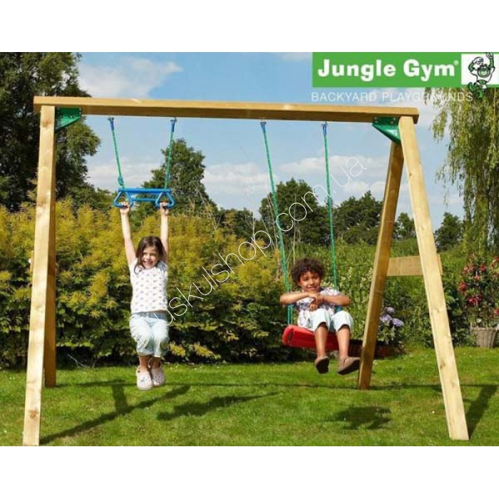 Jungle GymКачели Jungle Gym Jungle Swing 401_600Качели Jungle Gym Jungle Swing #401_600 идеально подойдет для любой детской площадки и игрового центра, ведь поспособствует тому, что ваши дети будут весело проводить свое время за играми. Данное оборудование имеет комфортную конструкцию, которая не только безопасна для детей, но и не вредит их здоровью благодаря экологически чистым материалам. Яркая расцветка такой качели привлечет внимание любого малыша, а также она не будет выцветать от воздействия солнечных лучей. Качели Джангл Джим Джангл Свинг #401_600 довольно компактная конструкция, а потому она не потребует для своей установки много места. Покрытие представленной конструкции позволяет ей оставаться устойчивой перед любыми негативными и погодными факторами. Универсальность конструкции позволяет любому ребенку использовать качели для своих игр.