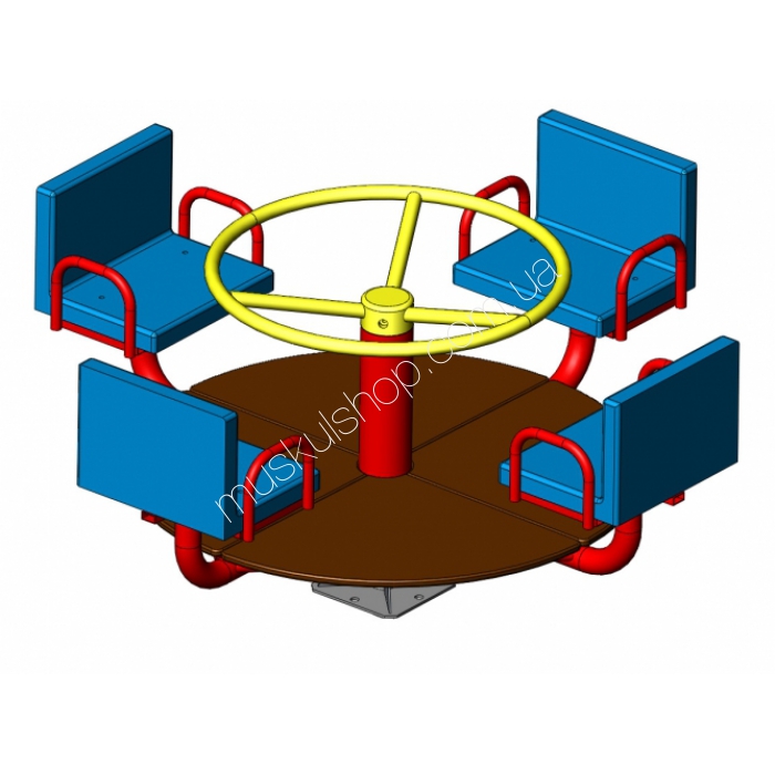 Карусель с рулем Vadzaari 012 это весьма простое, но достаточно эффективное устройство, которое наверняка порадует любого малыша. Современная конструкция аппарата позволит использовать его сразу нескольким детишкам. А вот красочная расцветка, что была достигнута благодаря глянцевым краскам, при любой погоде будет радовать глаз. Высококачественные материалы, из которых создано приспособление, позволят продлить его эксплуатационные возможности.