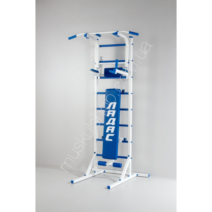 ЛадасКомбинированная стенка Ladas Универcал СТУПКомбинированная передвижная гимнастическая стенка Ladas Универсал СТУП - может устанавливаться на любой ровной поверхности не требуя крепления «пол-потолок» или к стене. Стойка выполнена из трубы усиленного сечения: 50х40 мм, предотвращающую прогибы, и имеет повышенную жесткость. Шведская лестница имеет 8 металлических перекладин, покрытых пластиковым покрытием, укомплектована съёмным турником и съёмными брусьями, которые могут использоваться для упражнений на прокачку пресса, а в перевёрнутом положении служат подставкой под штангу. Также стойка имеет съёмную скамью, которую можно устанавливать в наклонном и горизонтальном положении. Шведская стенка рассчитана на нагрузку до 120 кг, что позволяет заниматься на ней, как детям, так и взрослым.