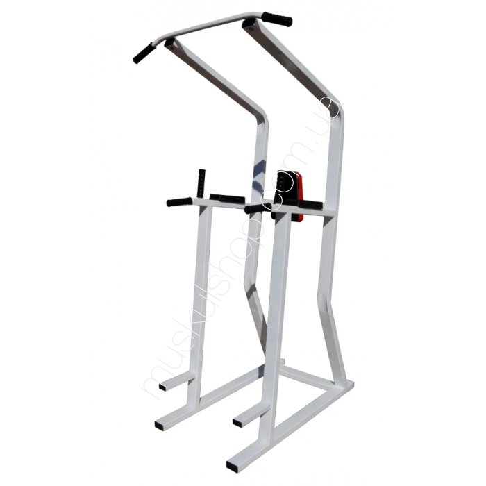 Комбинированный станок K201 имеет мощную раму с большим запасом прочности для подтягиваний на турнике, отжимания на брусья и подъёма ног. Изогнутый профиль дополняет дизайн, а также обеспечивает более удобные углы для наклона для тренировок. Подлокотники имеют специальную ковшеобразную форму, для фиксации локтей против соскальзывания как наружу, так и внутрь. Имеются выступы для ног, для удобной посадки в тренажер.