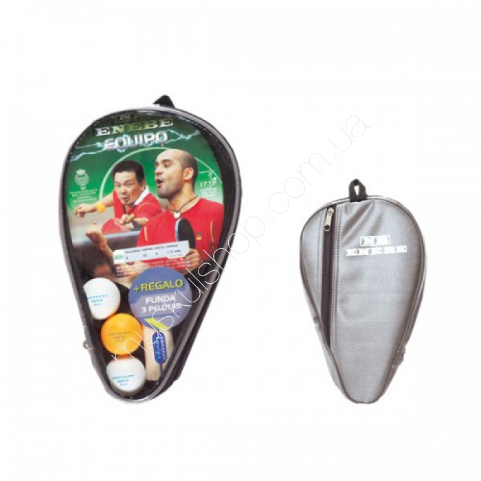 EnebeКомплект Enebe Equimpo 888451 1 ракетка, 3 мяча, чКомплект Enebe Equimpo 888451 - 1 ракетка, 3 мяча, чехол. В теннисный набор входит 1 ракетка для настольного тенниса Enebe SELECT TEAM Serie 400, три мяча, чехол для теннисной ракетки; Ручка: AVS. Система AVS, благодаря 2-м специальным мягким амортизирующим слоям, способствует поглощению всех вибраций, возникающих в момент удара. Таким образом, теннисист может лучше контролировать мяч и точнее бить по нему; Цвет накладок ракетки - красный. Рекомендован Федерацией R.F.E.T.M. Enebe 888451 - занимает лидирующие позиции в данной ценовой категории. Enebe - бренд с мировым именем и безупречной репутацией, бренд №1 в Испании, безупречный лидер на рынке Европы по производству товаров для настольного тенниса).