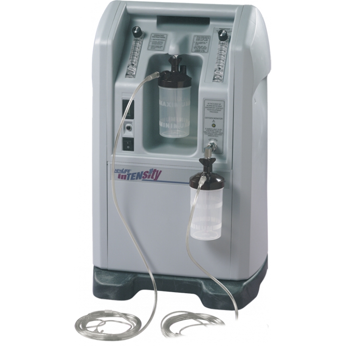 Концентратор НьюЛайф Интенсити 10 (дьюал) оснащен двумя кислородными выходами, способен обслуживать одновременно двоих пациентов. Модель широко применяется в косметологии, поликлиниках и клиниках разной направленности, санаториях, легко устанавливается в карете скорой помощи. Работает от 220В, мощность 590 Вт, а вес составляет 26,4 кг. Модель пользуется большим спросом среди крупных медицинских учреждений, комплектуется различным датчиками, они демонстрируют уровень напряжения, компрессора и кислорода в приборе. Модель укомплектована всем необходимым, различными шлангами, переходниками и трубками, фильтрами. Концентратор NewLife Intensity 10 вырабатывает 10 литров чистейшего кислорода, образует шум в пределах 55 Дб, не вызывает раздражение слуха, нормальный уровень рабочего давления 1,38 атм.